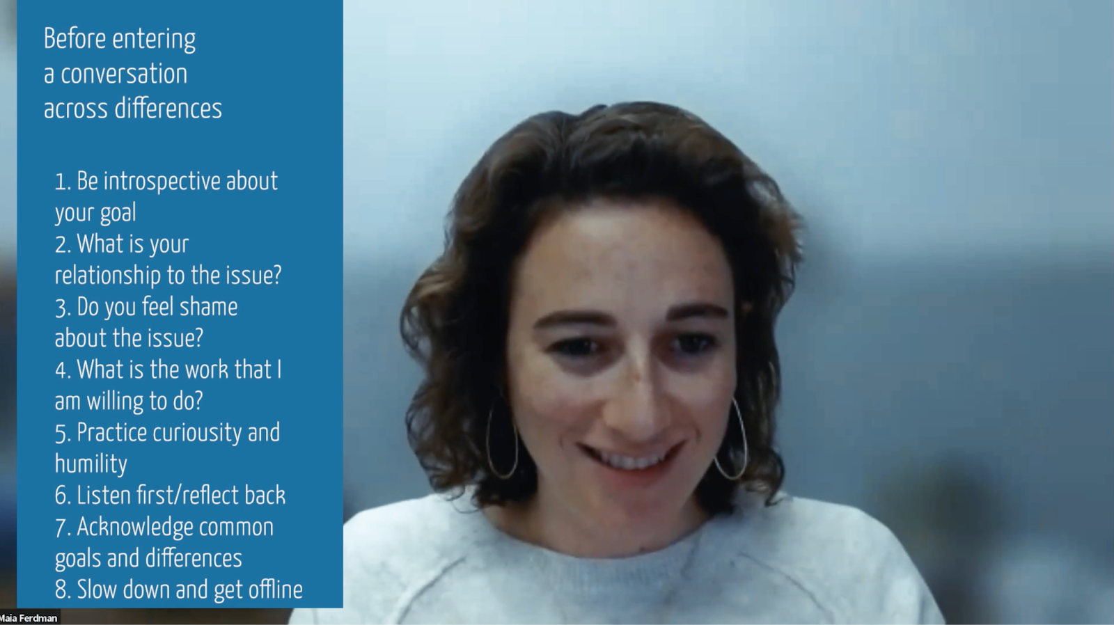 On December 9th, BKI deputy director Maia Ferdman was featured in Take Heart Now: Spiritual Tools for Centering and Compassion, a series hosted by the Guibord Center, an interfaith organization promoting shared values including compassion, respect, and concern for others. In her talk, Maia explored how to center kindness even amid conflict and disagreement. She emphasized the power of understanding and connection in resolving disputes, offering nine practical steps for navigating challenging relationships across differences. Watch the full conversation here.