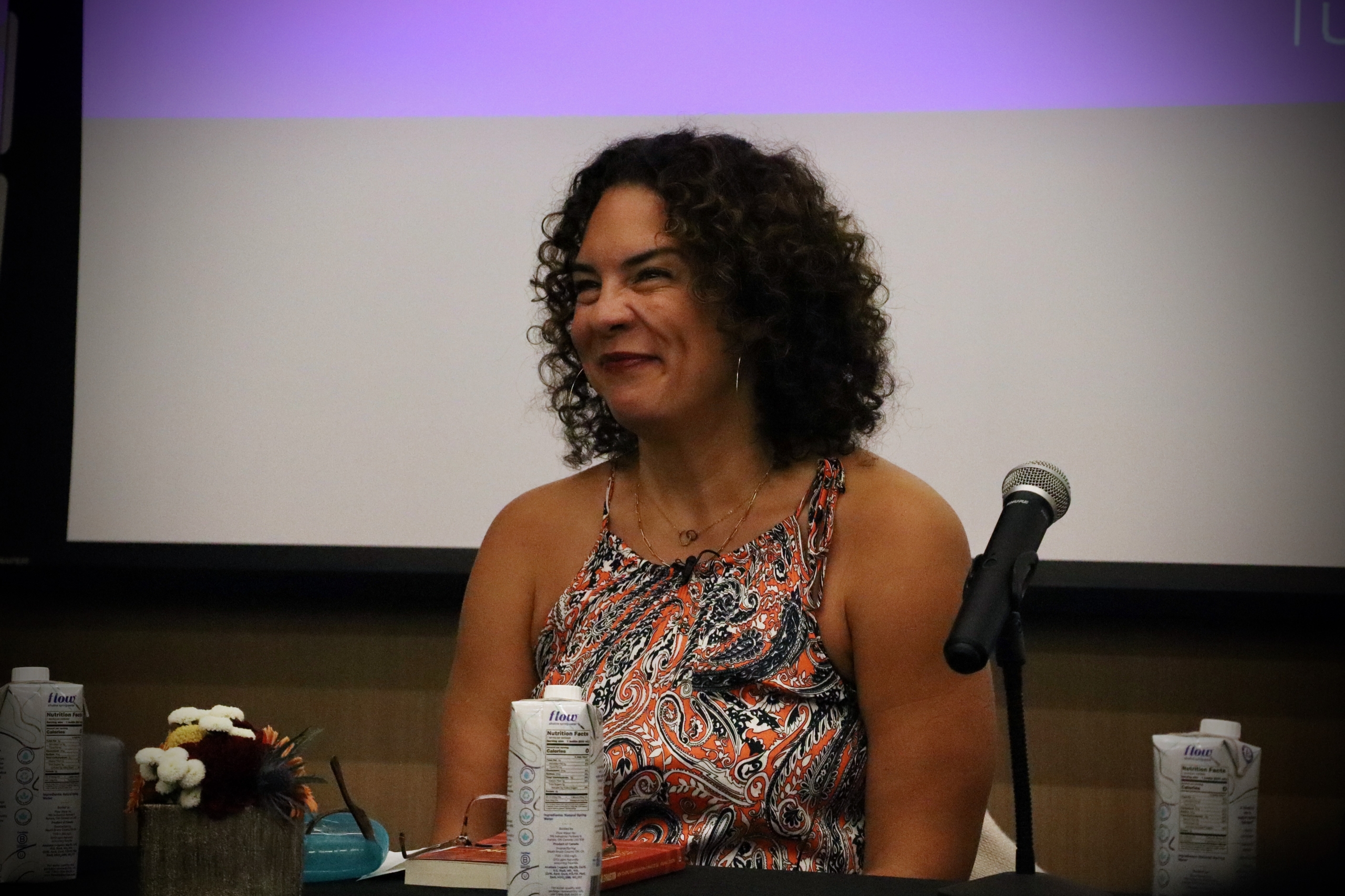 Dr. Ralina L. Joseph reads an excerpt from her latest book, Racial Exhaustion: How to Move through Racism in the Wake of DEI. Photo by Hannah Park.